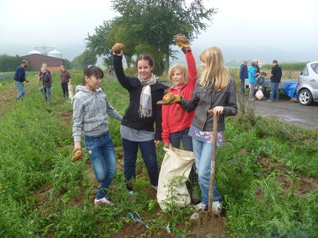Urban Gardening Kartoffelernte auf dem Bio Acker